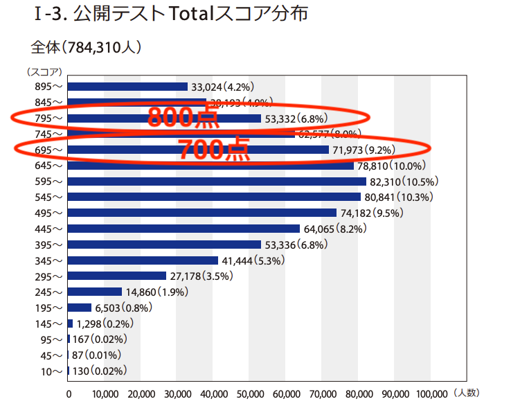 以上の計算から、TOEIC700点から800点にするにはあと20問正解する必要があるということです!